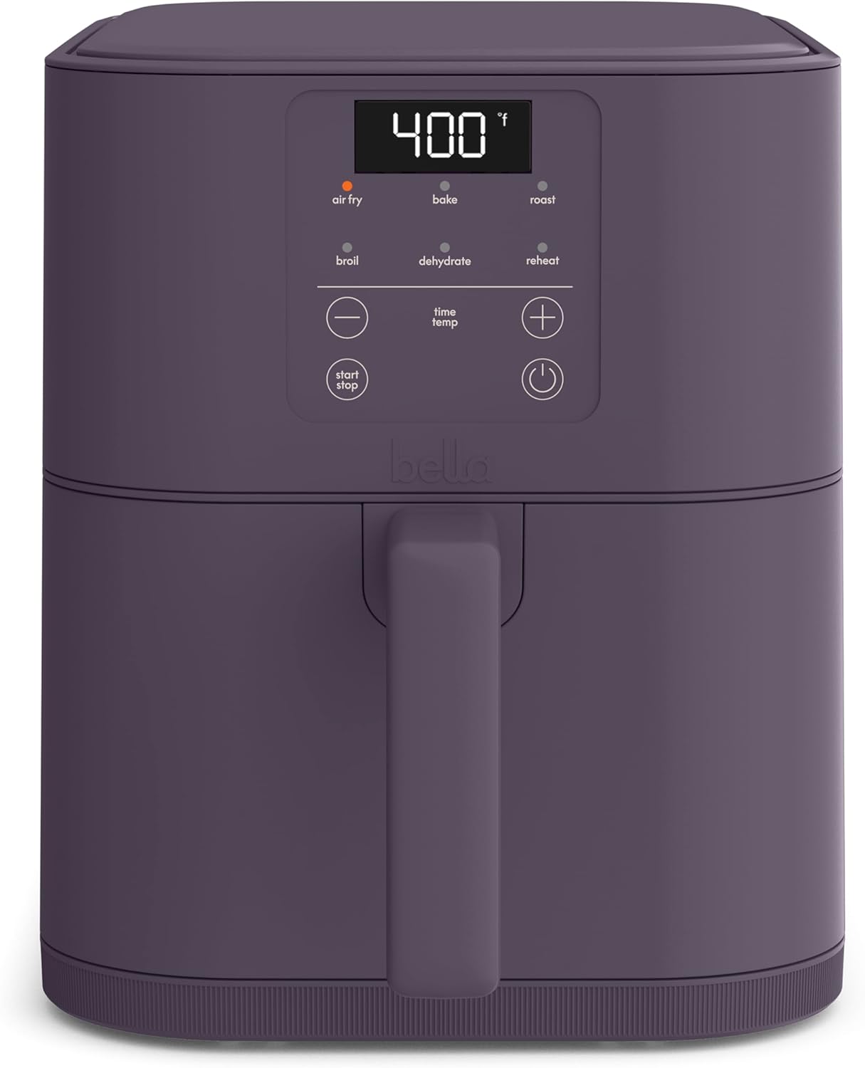 bella 6 Qt Slim Air Fryer, Fits-anywhere™ Kitchenware, EverGood™ Ceramic Nonstick Coating, Adjustable Temperature, 6 Preset Cooking Options, 60 Min Auto Shutoff w Audible Tone, 5lb Capacity, Plum
