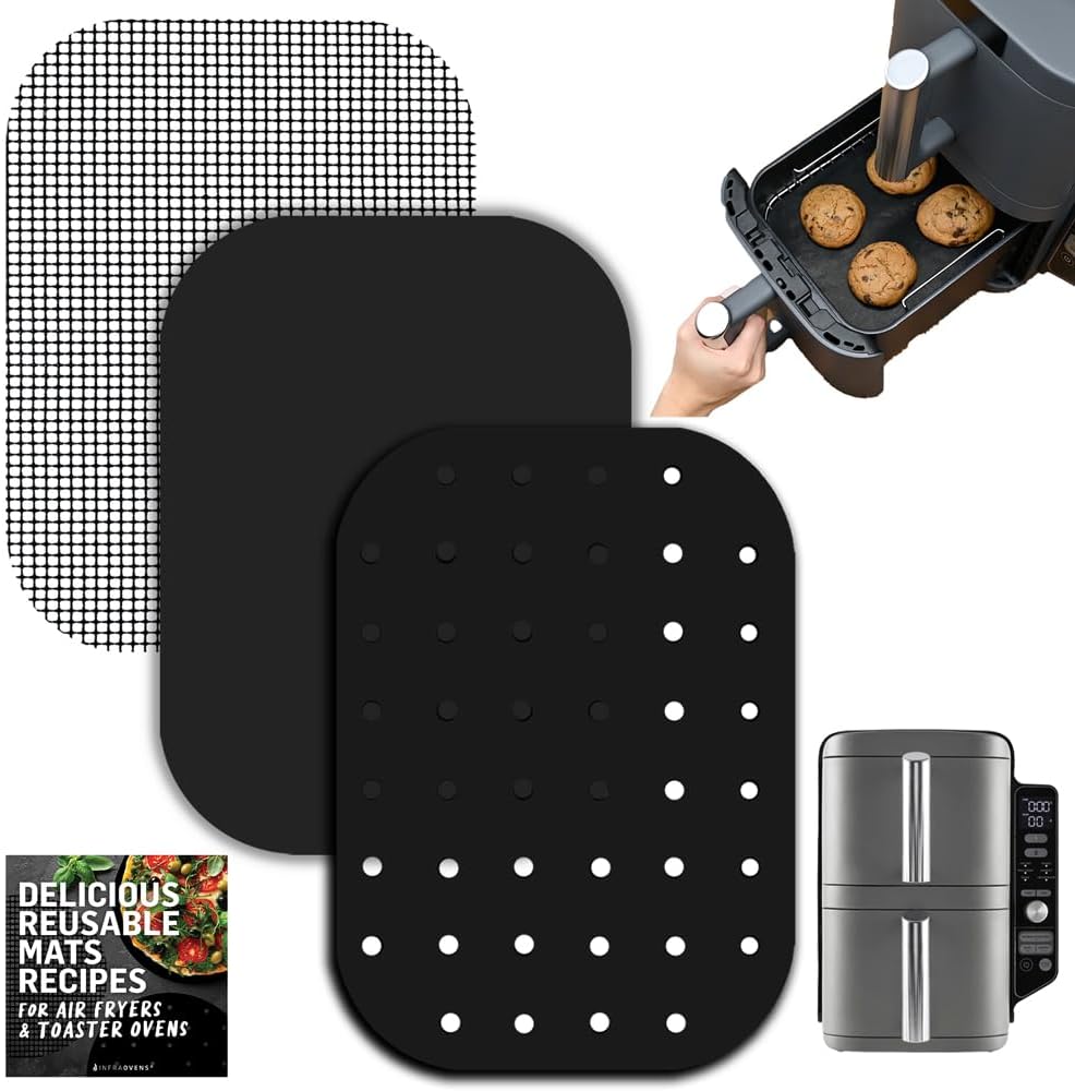 Square Silicone Air Fryer Liners 2 Pack, Compatible with Ninja AF141 181, 8.5 Inch Air Fryer Liners for COSORI 5-6.5 QT, Reusable Silicone Basket, Air Fryer Accessories