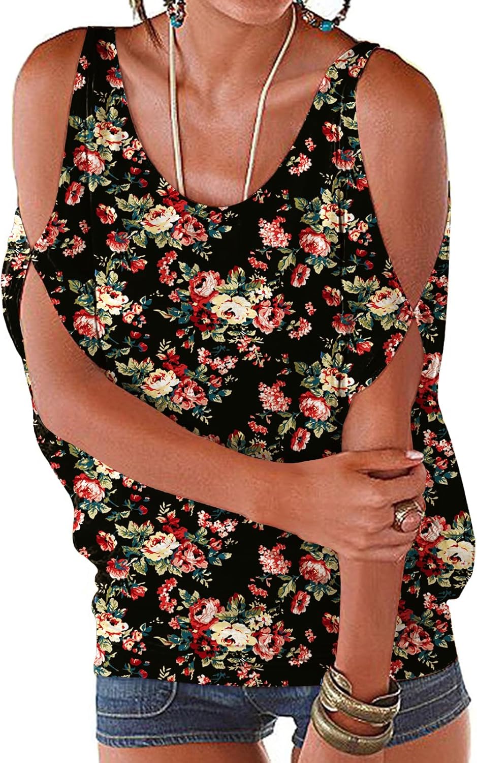 Miselon Women Cold Shoulder O-Neck Short Sleeve Loose Fit Summer Shirt Blouse Tops