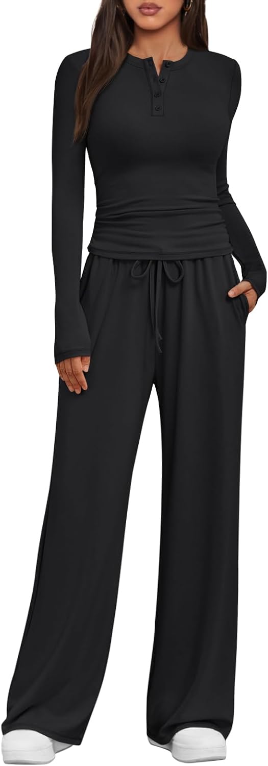 Trendy Queen Women’s 2 Piece Matching Lounge Sets Fall Fashion Two Pieces Sweat Outfits Long Sleeve Wide Leg Pants Tracksuits