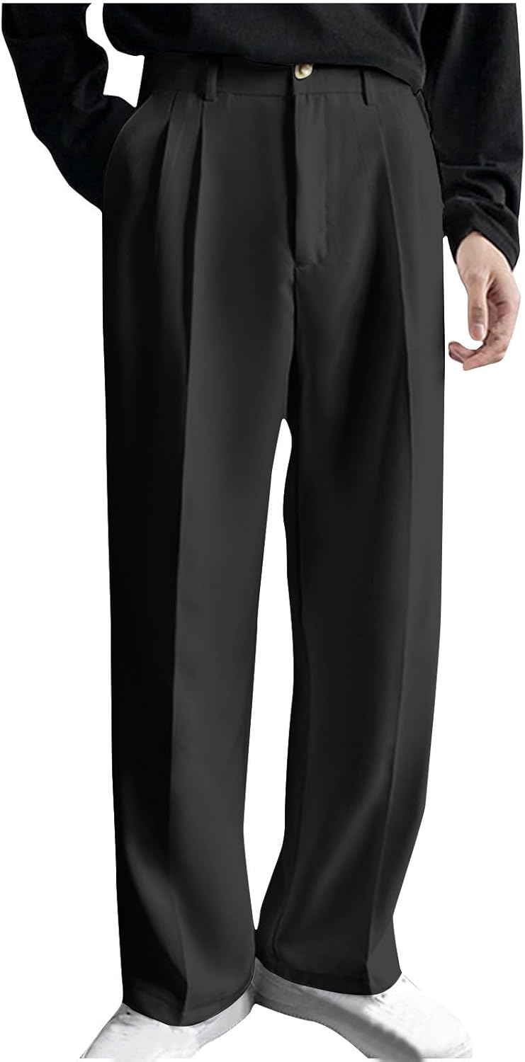 Men’s High Waist Work Pants Stylish Business Casual Outfits 2025 Office Dress Pants Loose Trousers with Pockets