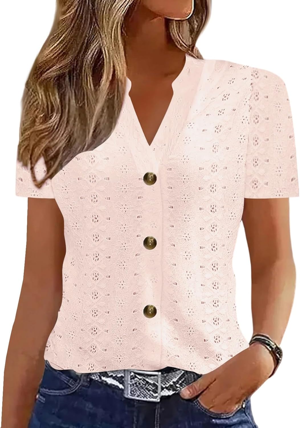 Womens Blouses Ruffle Short Sleeve T Shirts V Neck Double Tiered Bell Outfit 3/4 Sleeve Tops Fashion Loose Fitting clothes