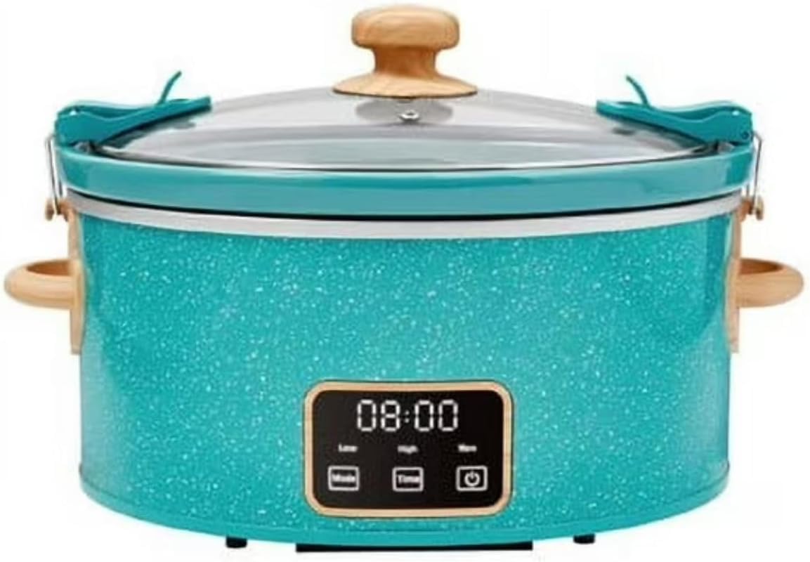Pioneer Woman 6-Quart Programmable Digital Slow Cooker with Locking Lid – Teal Speckle, Portable Design & Dishwasher Safe (Teal Speckle)